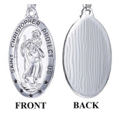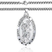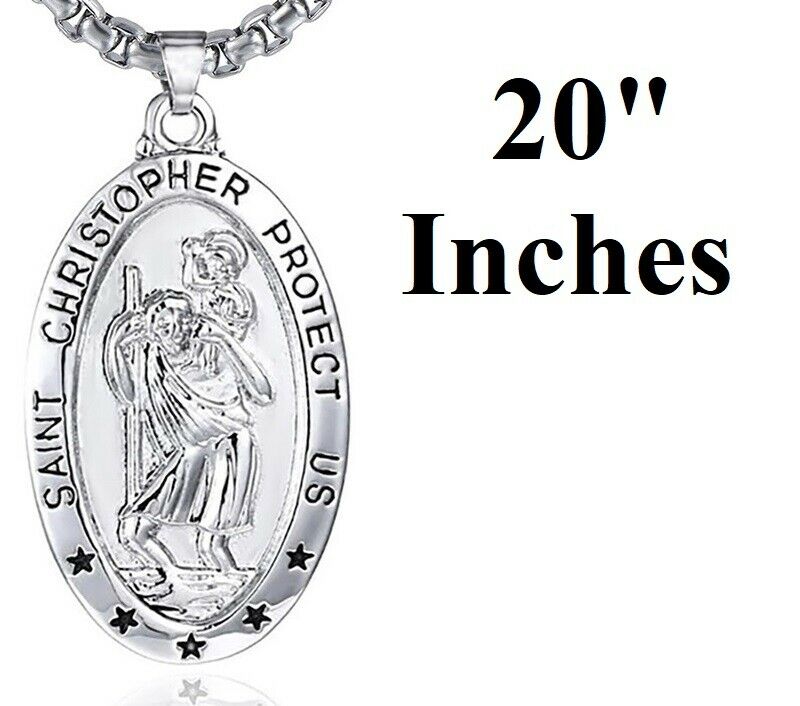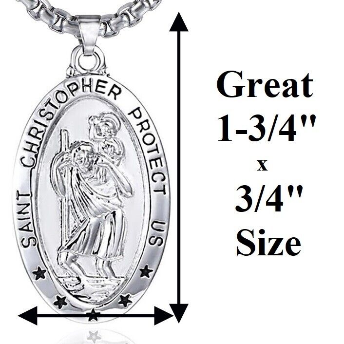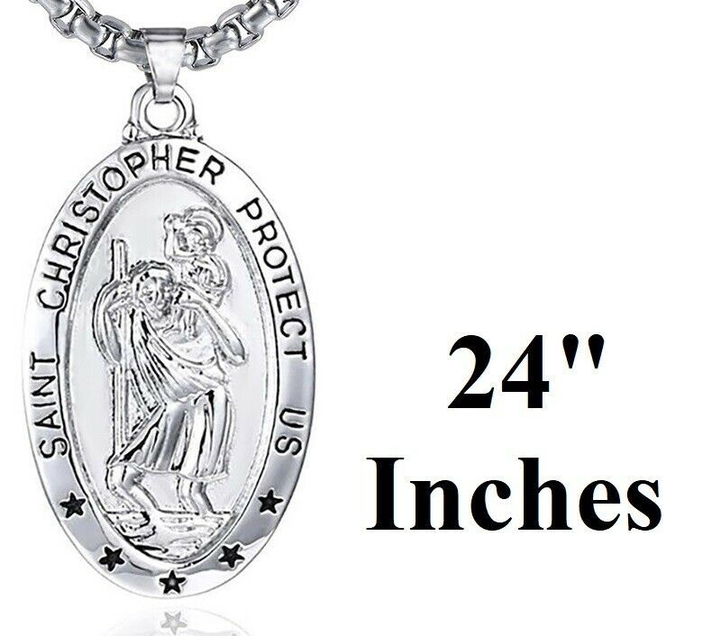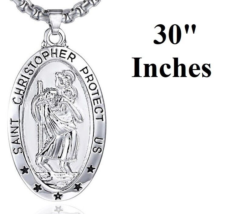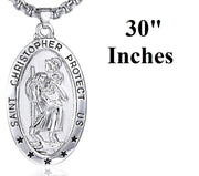 20" 24" or 30" Silver Stainless Steel Link Chain Necklace and St. Saint Christopher Pendant With Gift Pkg
