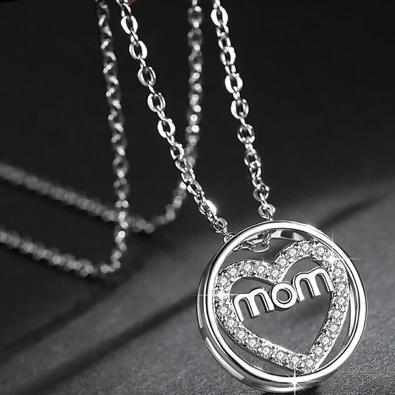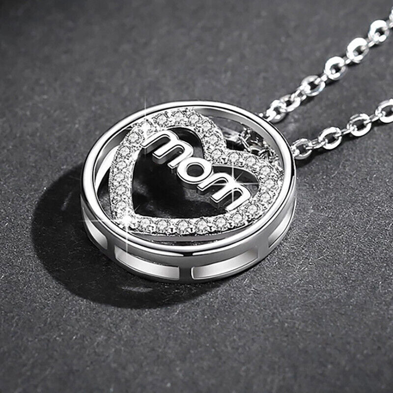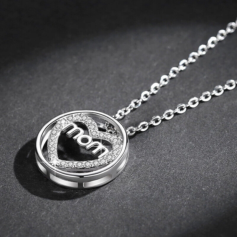Valentines 925 Sterling Silver Women's Necklace With Mom Heart Love Pendant D831