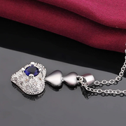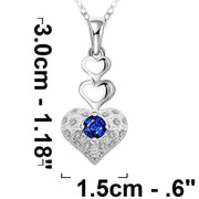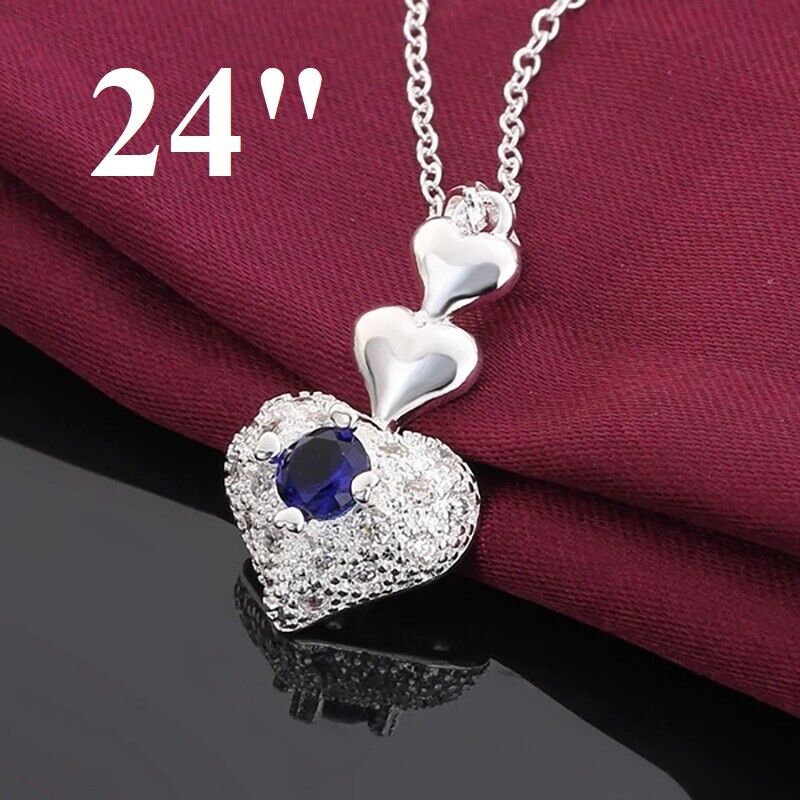 Women's 24" 925 Sterling Silver Chain Necklace With Sapphire Heart Pendant D816