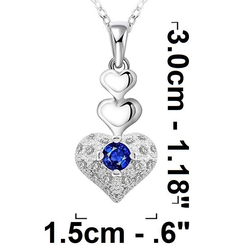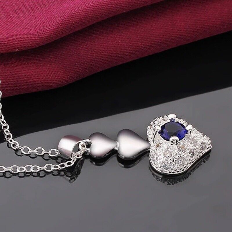Womens 925 Sterling Silver Link Chain Necklace And Sapphire Heart Pendant D816