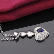 Description: Valentines 925 Sterling Silver Womens Necklace With Sapphire Heart Pendant, Valentime's Day, Mother's Day, Mom Gift
