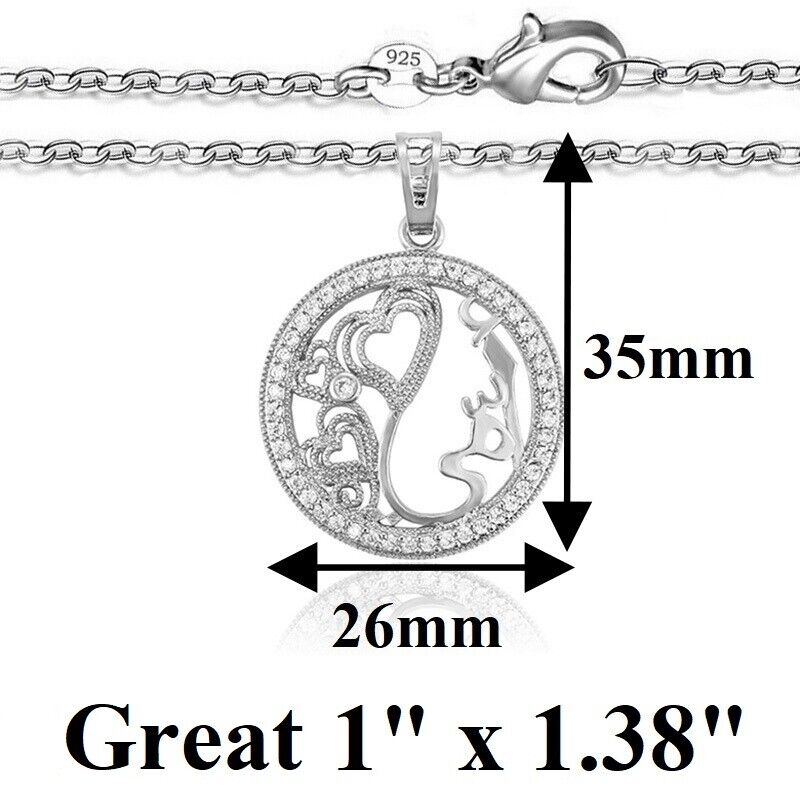 Women's 925 Sterling Silver Mother's Daughter's Chain Pendant 18" Necklace D952